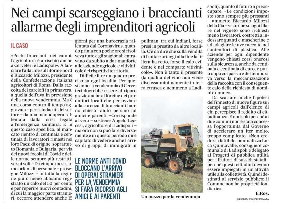 L'agroalimentare è il settore più resiliente nella crisi economica post #Covid ma ancora tanti produttori sono in difficoltà Il Corriere ne parla con il presidente #RiccardoMilozzi Cia Roma nella rubrica #LazioEconomia in edicola oggi #21giugno Il pezzo è anche online al link nel primo commento
